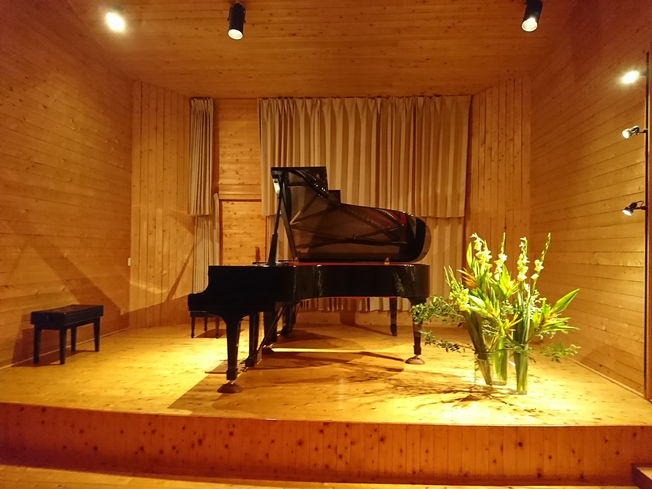 レッスン場所は森の中にある、木の良い香りのする手造りコンサートホールです。